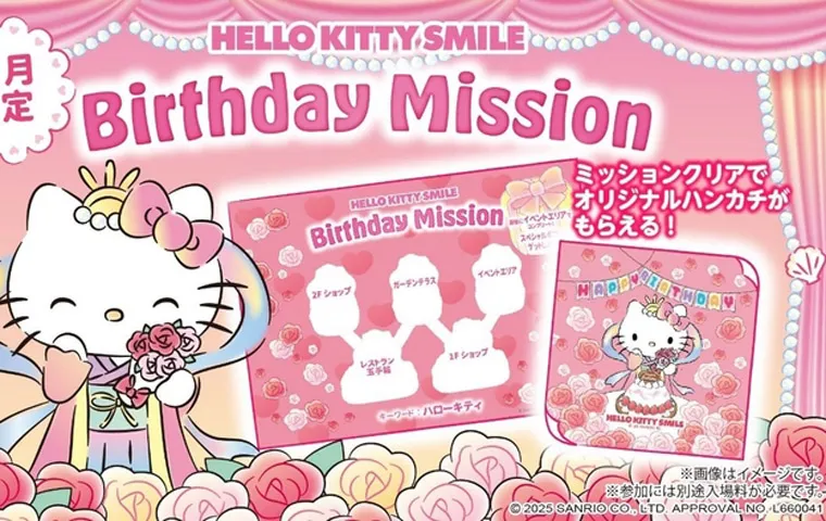 “Birthday Mission” will be held at the media art and restaurant “HELLO KITTY SMILE” on Awaji Island from November 1st to November 30th, 2025. You will receive an original handkerchief limited to your birthday.