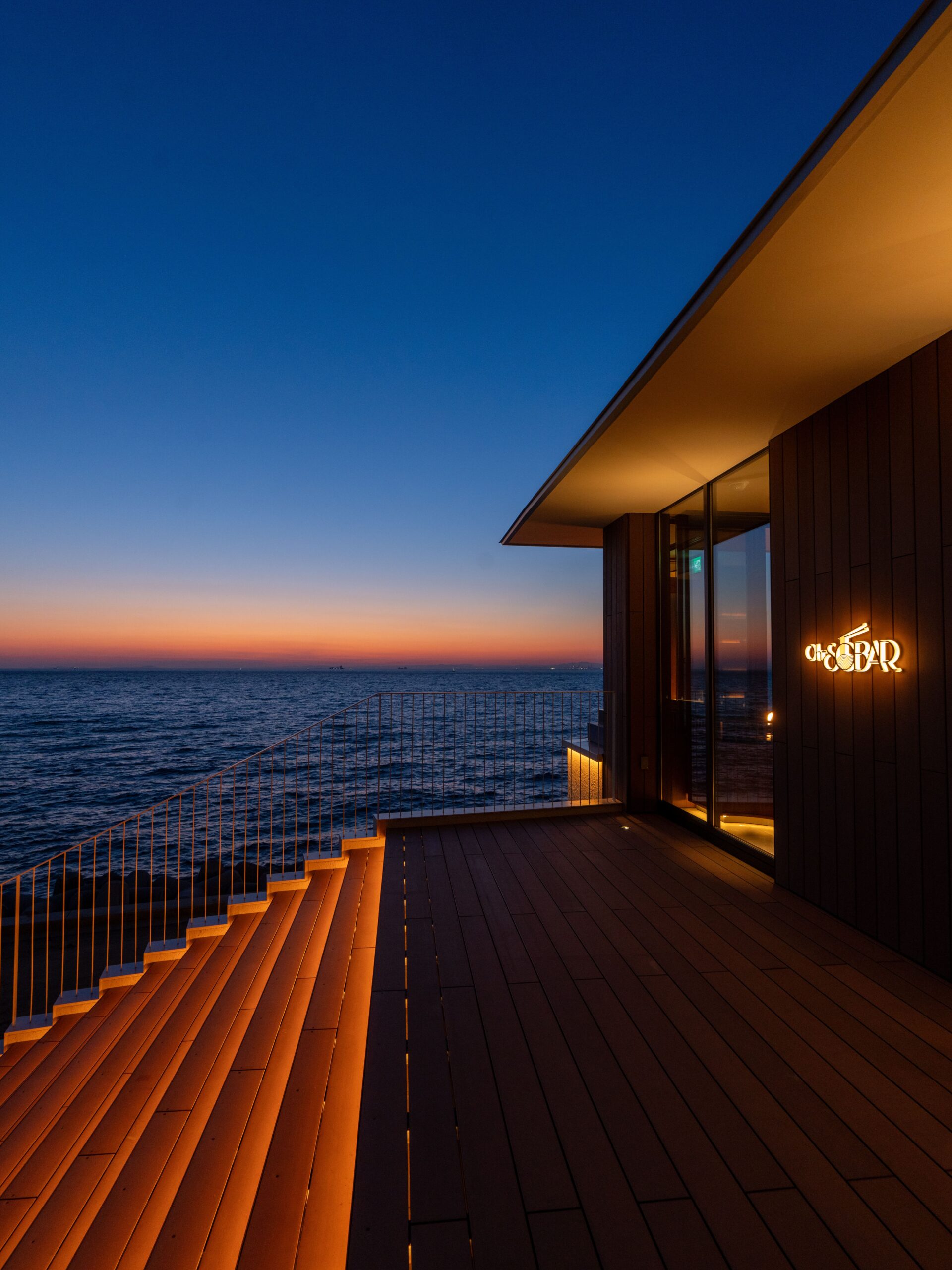 Step into Oh-SOBAR with a concept of contemporary Japanese soba, designed by the famous designer Yasumichi Morita, and enter a space that incorporates interior finishes in natural wood with the scenic beauty of Awaji Island’s coastline.