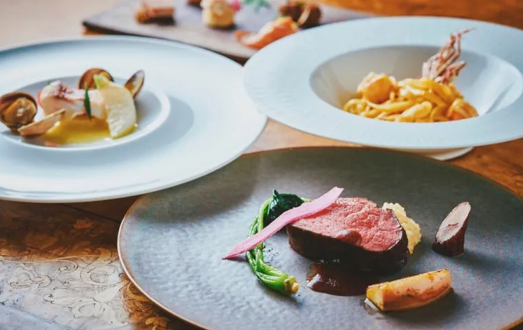 For both lunch and dinner, there are three types of full-course meals to choose from: the one with one main dish, the second one with two main dishes, and the luxurious special meal.