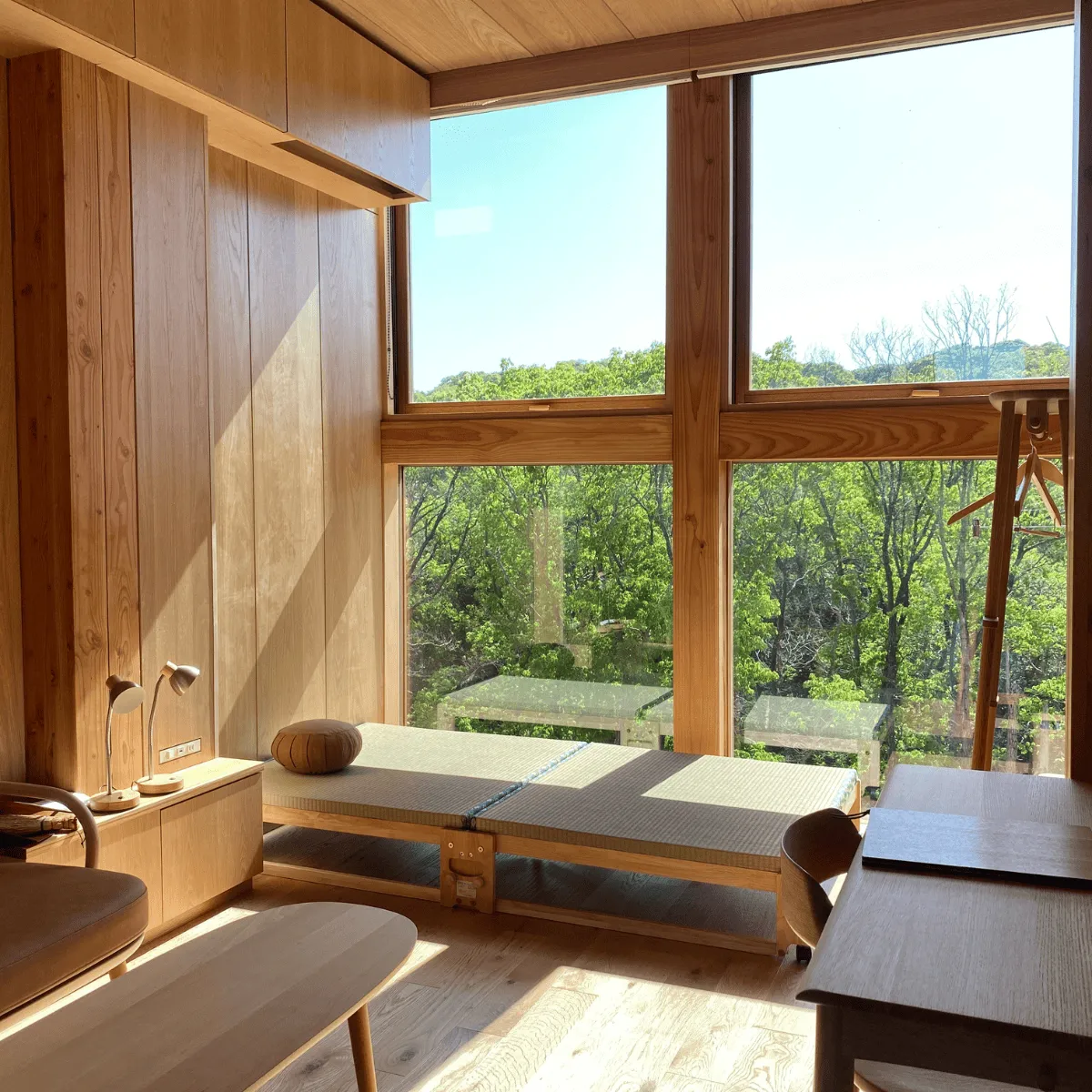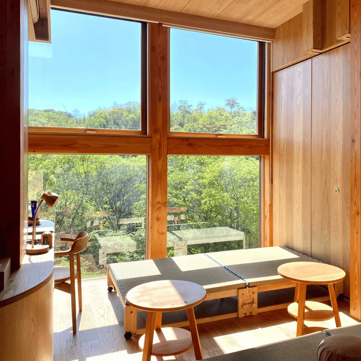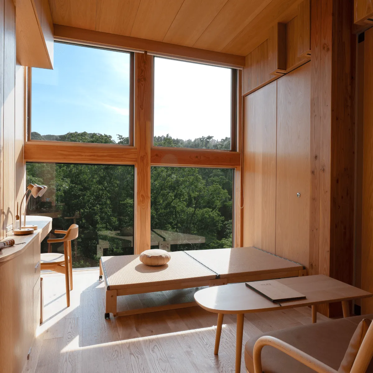 Walk barefoot upon the wooden surface, and breathe in the warm scent of Japanese cedar. Listen to the peaceful sounds of nature, from the soft breeze to chirping birds.